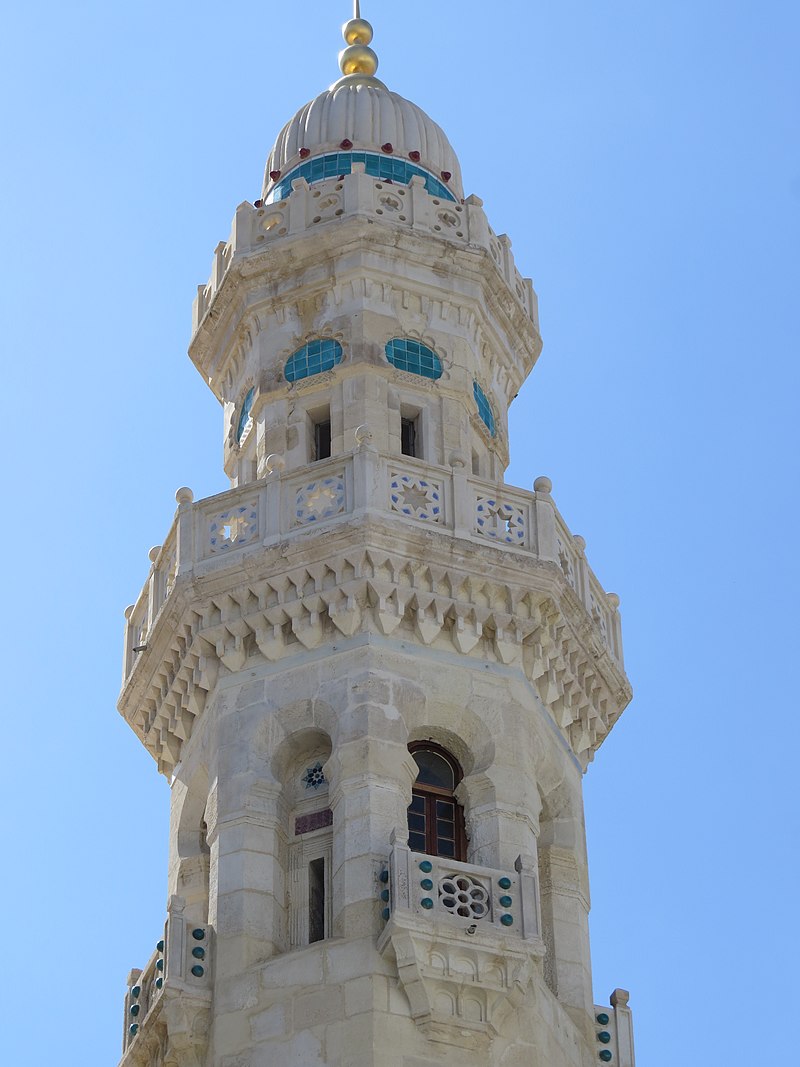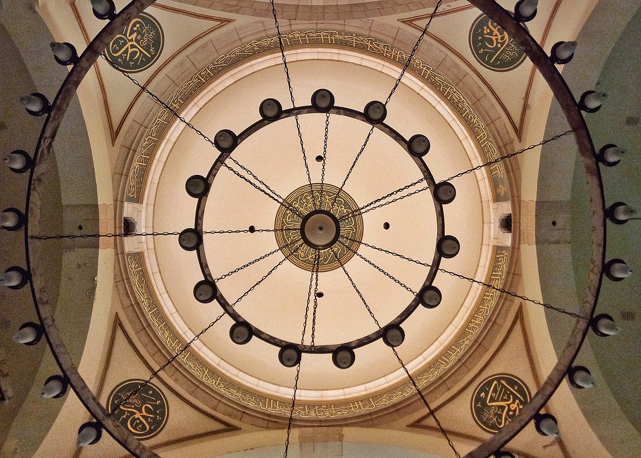 - ومن جملة الزخارف والنقوش التي كانت مكتوبة آيات قرآنية، التي أبدعته يد الخطاط إبراهيم جاكرهي أثناء إنشاء المسجد في العهد العثماني.